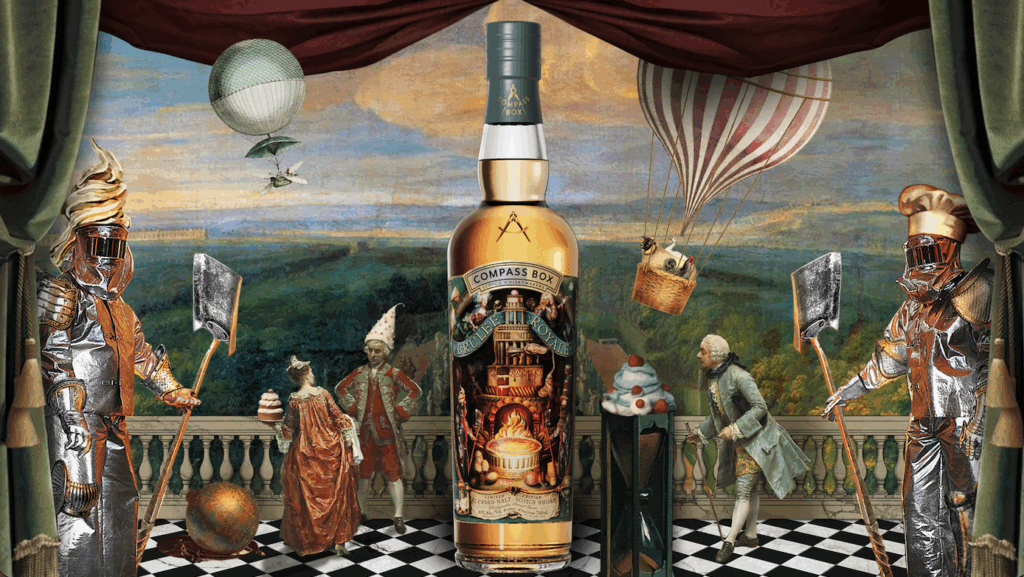 In classic Compass Box style, the limited edition Brûlée Royale features artwork as lush as the whisky – surreal scene of alchemy and mastery within the Versailles Palace kitchens where Massialot created his majestic Crème Brûlée that lives on to this day inspiring tastebuds and artisans more than three centuries later.